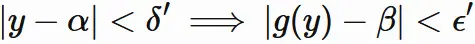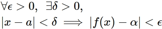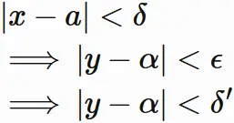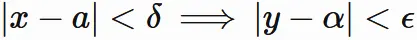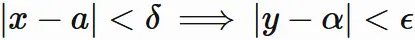 関数 $f(x)$ を $\alpha$ を中心とするどんな小さな幅の中にも収められるようにする $x=a$ を中心とする 幅 $\delta$ が存在する。