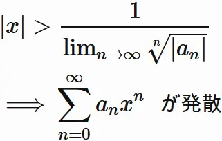 より、級数 $\sum a_{n}x^{n}$ は発散する。