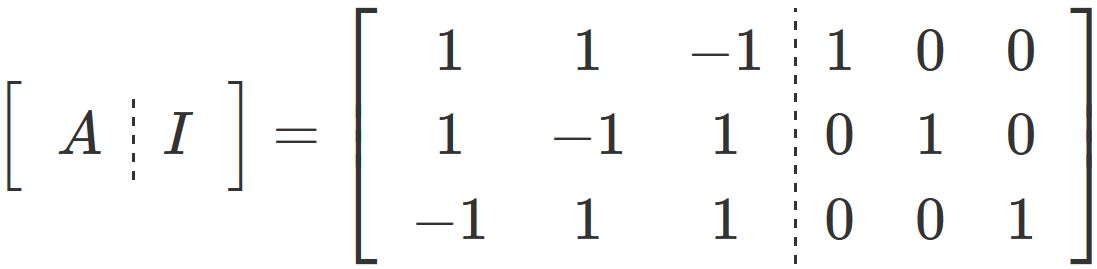 その結果として右側半分に現れる行列 $X$ が $A$ の逆行列になる