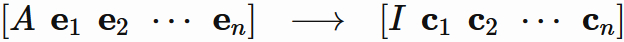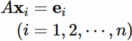 先ほど述べたように、各 $\mathbf{c}_{i}$ は $A\mathbf{x}_{i} = \mathbf{e}_{i}$ の解 $\mathbf{x}_{i}$ に等しいので、