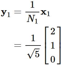 \mathbf{y}_{1} = \frac{\mathbf{x}_{1}}{\|\mathbf{x}_{1} \|}