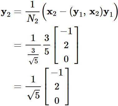 $\mathbf{x}_{2}$ から $\mathbf{y}_{1}$ 方向の成分を取り除けばよい。