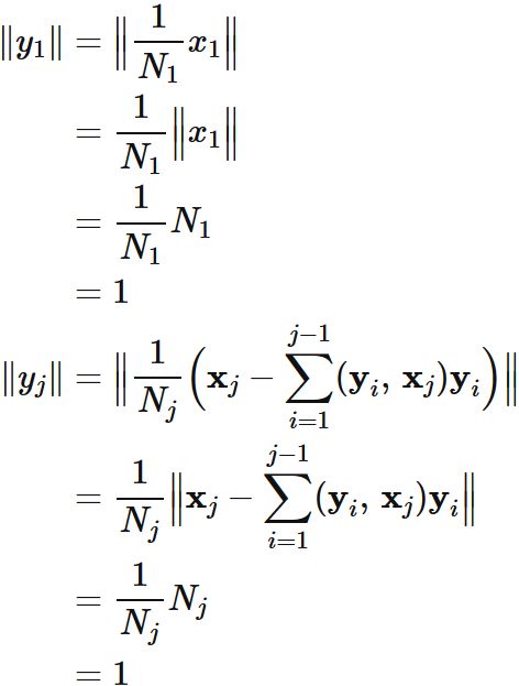 このように定義した $\mathbf{y}_{i}$ は正規直交系を成す。