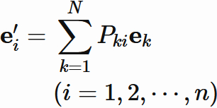 $k$ 行 $i$ 列成分とする行列 $P$ は基底変換行列と呼ばれる。