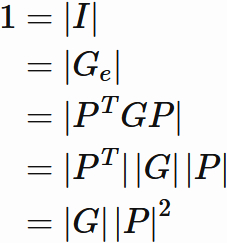 単位行列の行列式が $1$ であることを用いると、