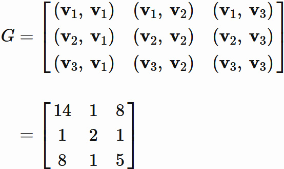 であり、基底 $(1)$ に対するグラム行列と