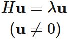 そこで $H$ の固有値 $\lambda$ の固有ベクトルを $\mathbf{u} $ と表すと、