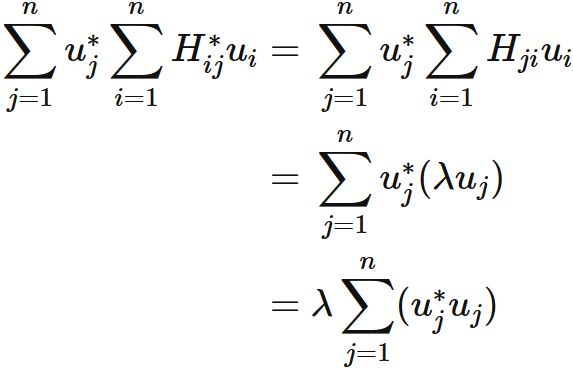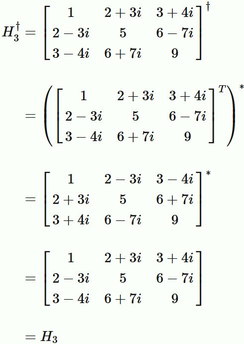 $H^{\dagger} = H$ ( 各成分で $H_{ij}^{*} = H_{ji}$ ) であることと、