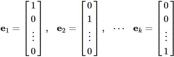 基本ベクトル $\mathbf{e}_{1}$, $\mathbf{e}_{2}$, $\cdots$, $\mathbf{e}_{k}$ を