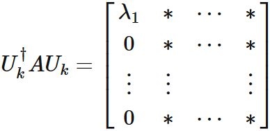 $k-1 \times k-1$ のエルミート行列が対角化可能であることを仮定し、