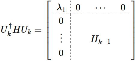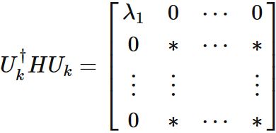 上式は $k \times k$ 次のエルミート行列 $H$ がユニタリー行列 $U$ によって対角化されることを表す式である。