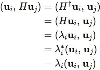 一方で内積 $(\mathbf{u}_{i}, \hspace{0.5mm} H\mathbf{u}_{j}) $ は、