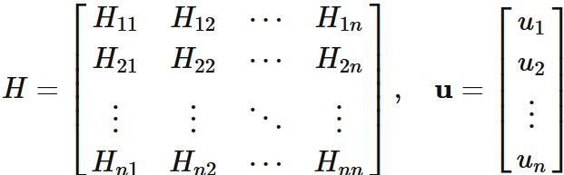 行列 $H$ と 固有ベクトル $\mathbf{u}$ を成分によって、