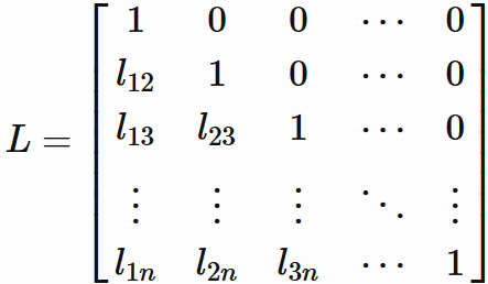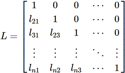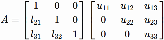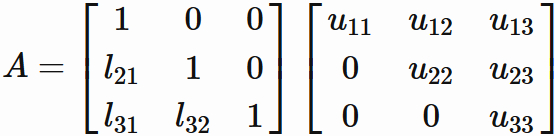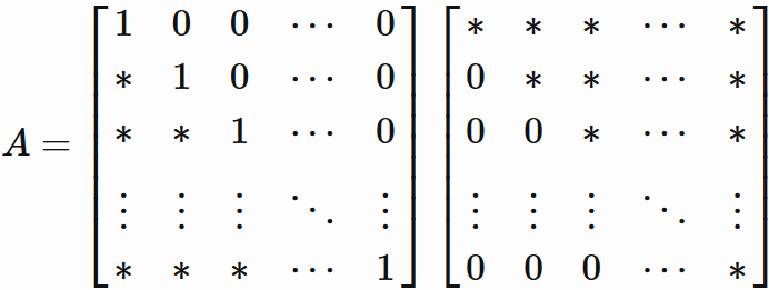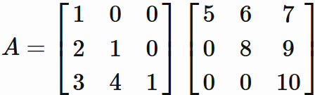 このように、行列 $A$ は下三角行列と上三角行列の積に分解される。