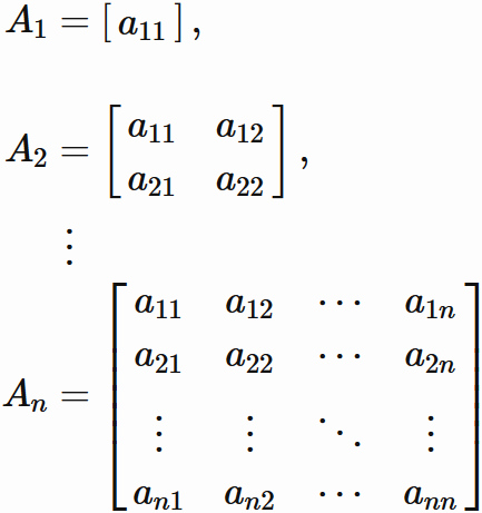 主座小行列 $A_{k}$ $(k=1,2, \cdots, n)$ とは、