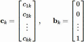 $k$ 成分ベクトル $\mathbf{c}_{k}$ と $\mathbf{b}$ を