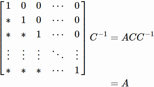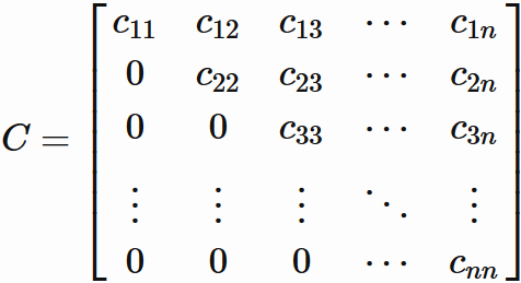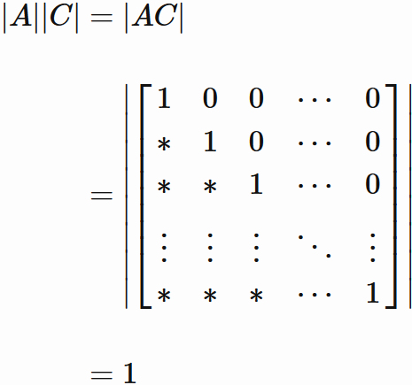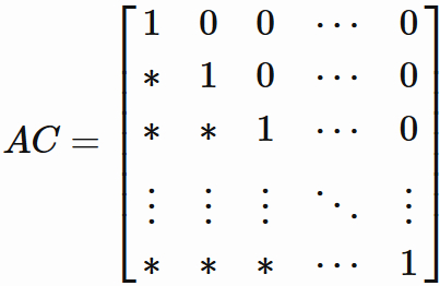 $(4)$ の右辺の上三角行列 $C^{-1}$ の対角成分が $0$ でないこと証明する。
