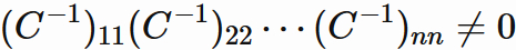 $C^{-1}$ の個々の対角成分は 0 にならない。