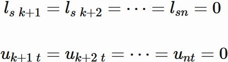 $0$ から $k-1$ 行の成分が $0$ であり、