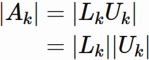 右辺は$L$ の主座小行列と $U$ の主座小行列の積になっている。