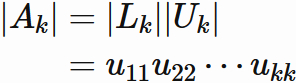 $U$ の $k$ 行 $k$ 列より左上にある成分の積によって表されることを意味している。