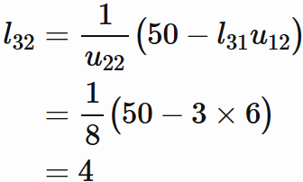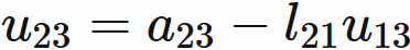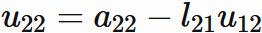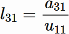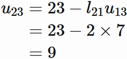 最期に $l_{31}$, $u_{13}$, $l_{32}$, $u_{23}$ が既に求まっていることから、