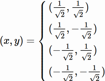 (x,y) = (\frac{1}{\sqrt{2}}, \frac{1}{\sqrt{2}})