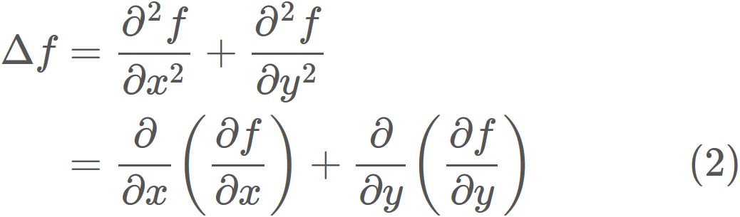 2次元のラプラシアンは、デカルト座標 $(x, y)$ によって、