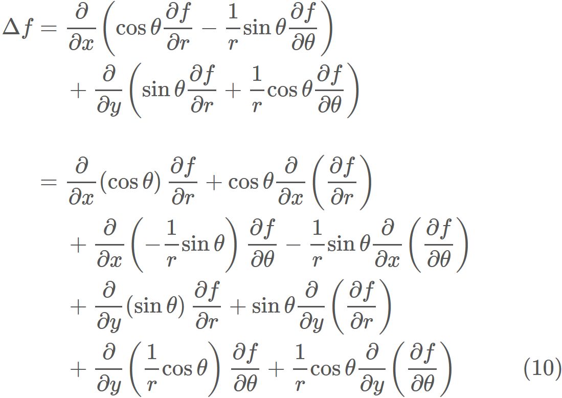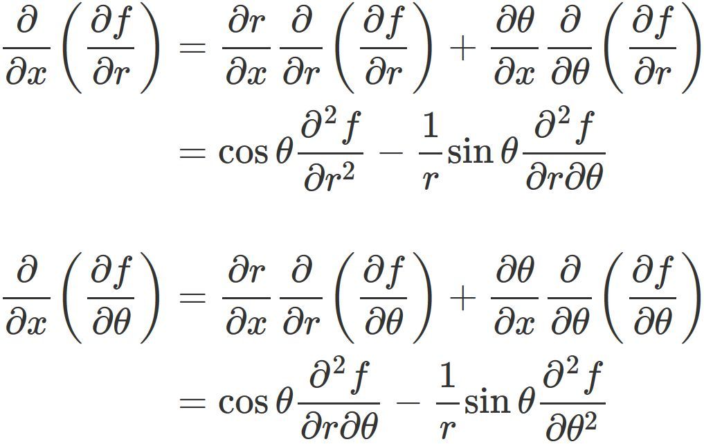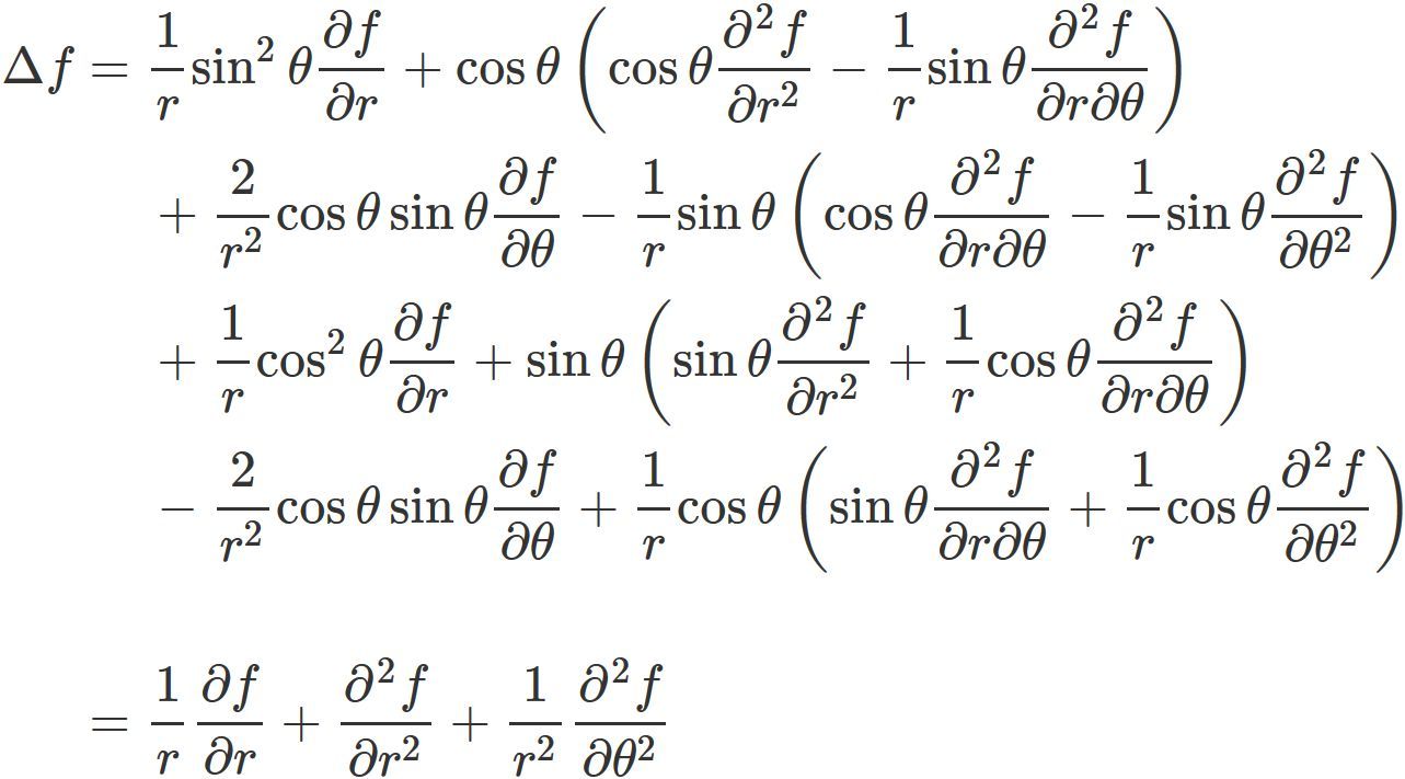 極座標 $(r, \theta)$ で表されている関数 $f(r ,\theta)$ に作用するラプラシアン