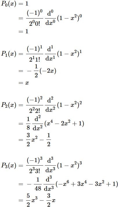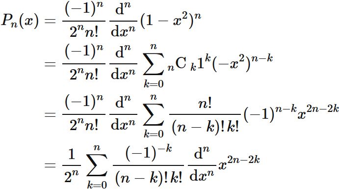 この表現から分かるように、$n$ 次ルジャンドル多項式は $n$ 次多項式である。