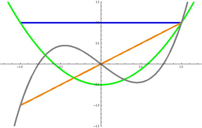 例えば $1$ 次のルジャンドル多項式は、$1$ と直交し、