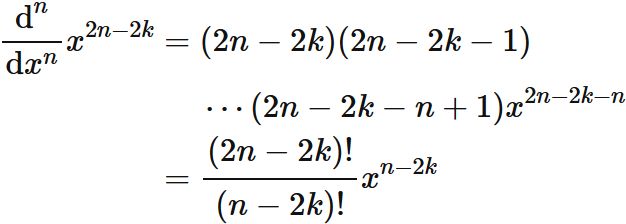 最後の式の $ \frac{\mathrm{d}^{n}}{\mathrm{d} x^{n} } x^{2n-2k}$ の部分は、
