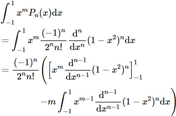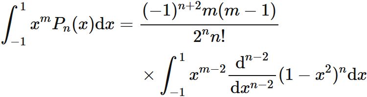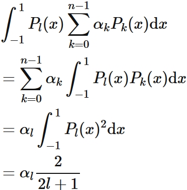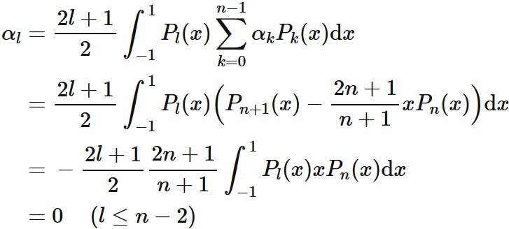 したがって、右辺は $n-1$ 次までのルジャンドル多項式の線形結合で表せる。