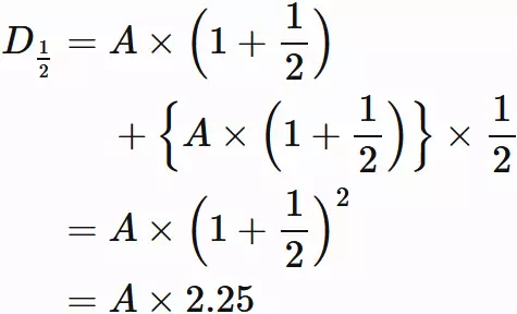 預金を始めてから1年後の預金額を $D_{\frac{1}{2}}$ とすると、