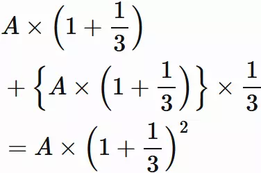 3回利息を受け取れる口座に $A$ 円を預けたとする。