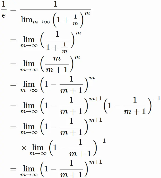 $\Big(1-\frac{1}{n} \Big)^{n} \rightarrow \frac{1}{e}$