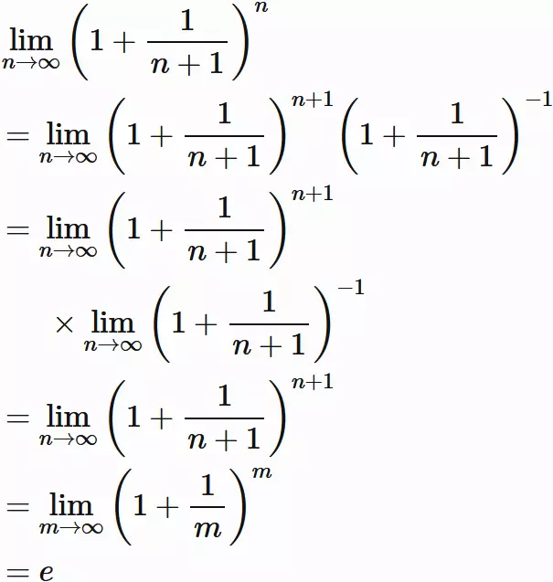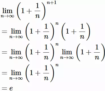 $\left( 1+ \frac{1}{n} \right)^{n+1}$ の極限は、