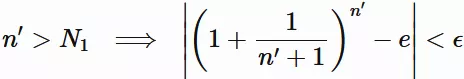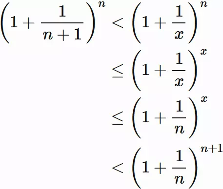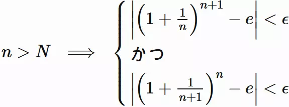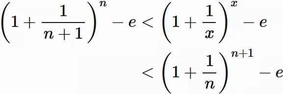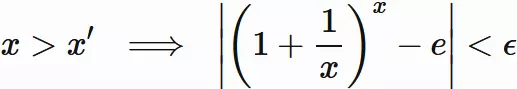 実関数 $f(x) = \left( 1 + \frac{1}{x} \right)^{x}$ の極限を用いて表しても良い。