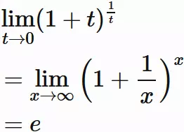 e = \lim_{t \rightarrow 0}(1+t)^{\frac{1}{t}}