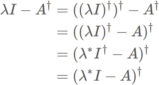 随伴行列 $A^{\dagger}$ の固有値は、$A$ の固有値の複素共役である