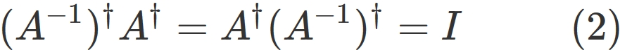 $(2)$ は $(A^{-1})^{\dagger}$ が $A^{\dagger}$ の逆行列であることを表している。