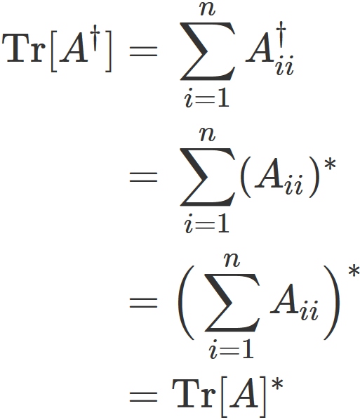 随伴行列のトレースはもとの行列のトレースの複素共役に等しい。