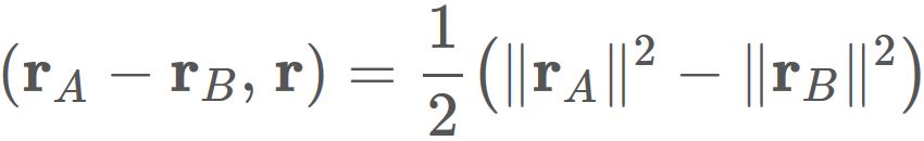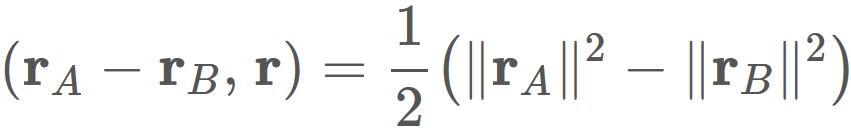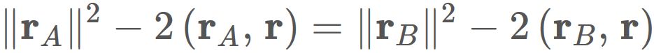 $A$ と $B$ の位置ベクトル $\mathbf{r}_{A}$ と $\mathbf{r}_{B}$ によって、