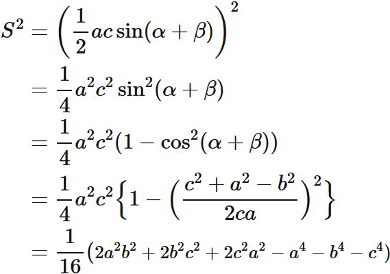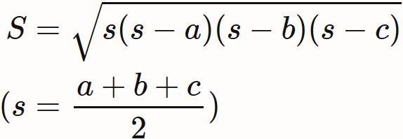 $ \triangle{ABC} $ の面積 $S$ は各辺の長さ $a,b,c$ によって