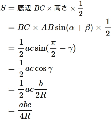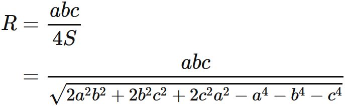 このように外接円の半径は三辺の長さによって表される。