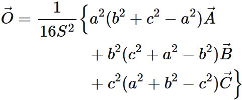 外接円の中心 (外心) の位置 $\vec{O}$ は、