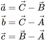 ここで $a,b,c$ は それぞれ $ \triangle{ABC} $ の辺 $AB$ と $CA$ と $AB$ の長さである。