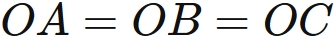 $O$ は三点 $A,B,C$ までの距離が等しい点である。