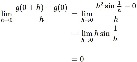であるので ($ |\sin\frac{1}{h}| \leq 1 $ を用いた) 、$x=0$ において微分可能であり、