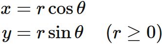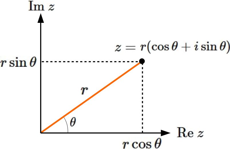 極形式はガウス平面の極座標表示である(下図)。